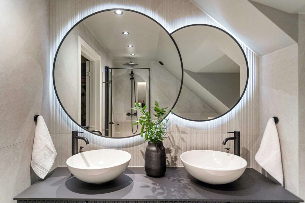 - Mirrors with built-in lighting Perfect for small powder rooms and bathrooms, mirrors with integrated LED light work as a light source and a decorative piece. They also prevent shadows on the face and offer both functionality and style.